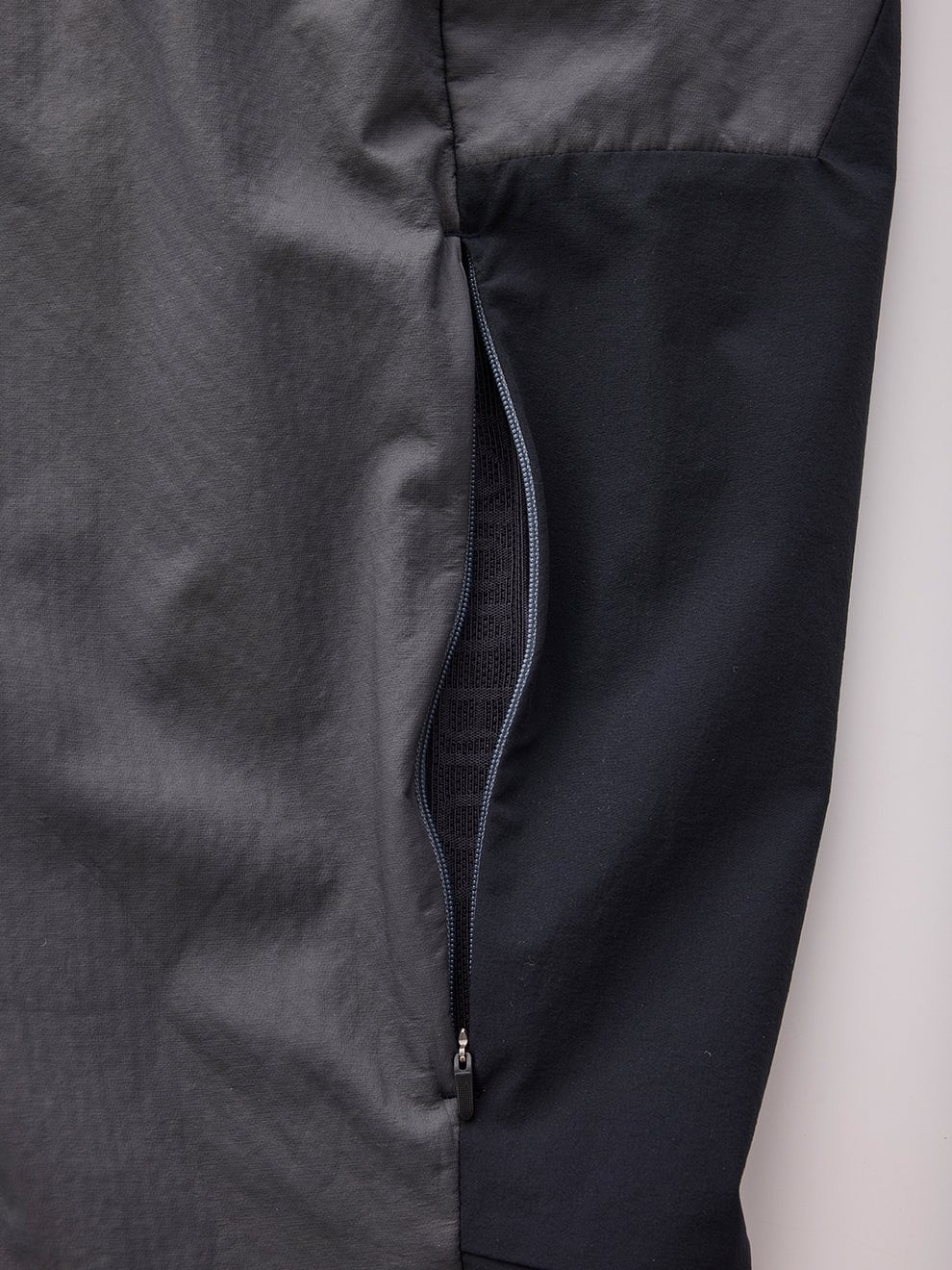 秋冬のマウンテンランニングを想定した新作パンツです。春夏シーズンの人気モデルSCRAMBLING PANTをベースに、低温下でのランニングに適した保温性をもたせました。メインの素材は通気性とストレッチ性が高く、汗をかいたときも肌離れが良いソフトシェルで、膝から上の前身頃に「Stretch Octa Bonding」をマッピングしています。同じく「Stretch Octa Bonding」をマッピングするSUB PANTよりもソフトシェルの面積が大きく、運動量が多いアクティビティや発汗量の多い方におすすめの一本です。サイドにベンチレーション、前面にはポケットを付けず、ウェスト背面に3箇所のポケットを備えています。
