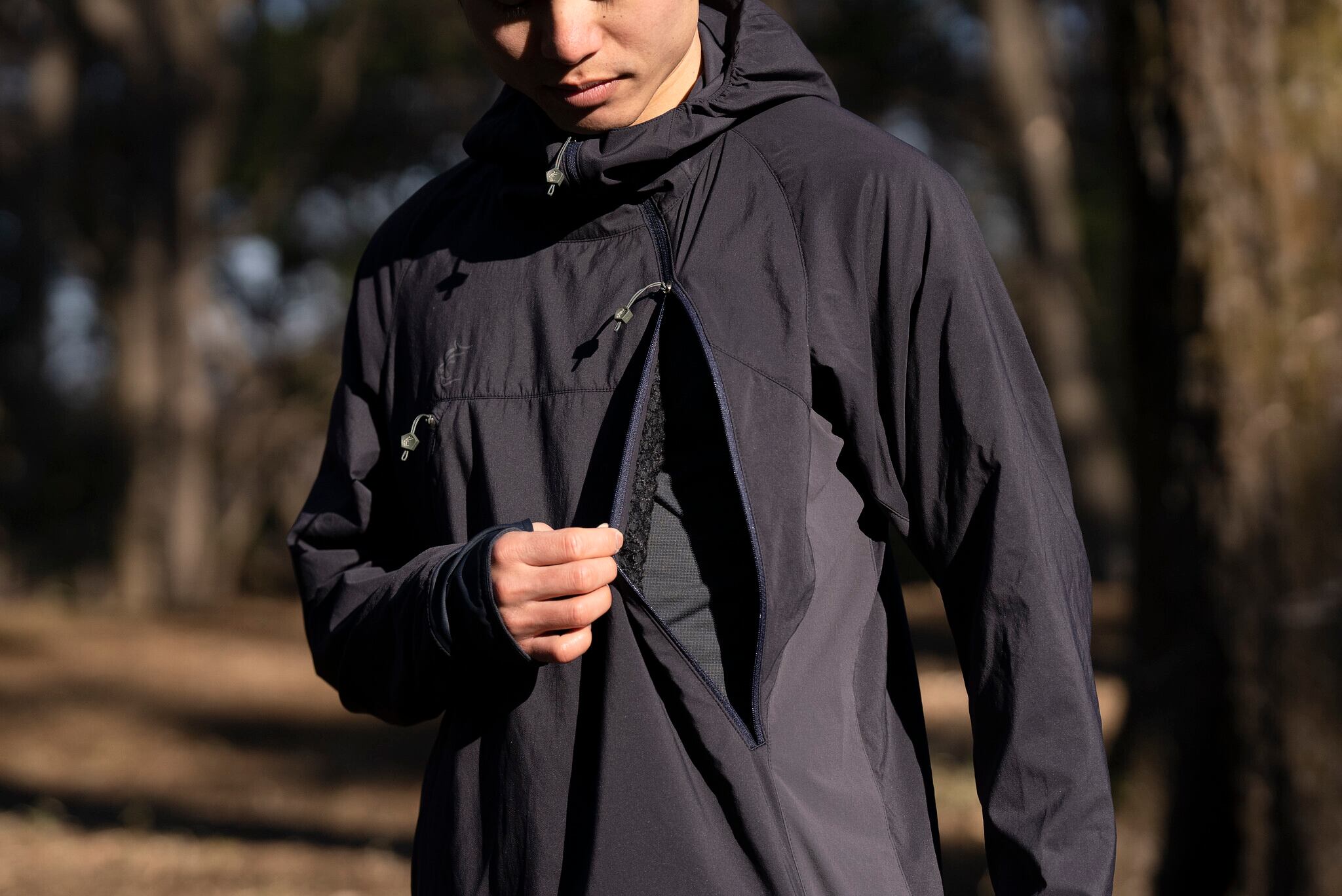 上下で開閉可能なダブルジッパー仕様。ベンチレーションとしてウェア内の換気を効率的に行いながら、着脱のしにくさを解消。