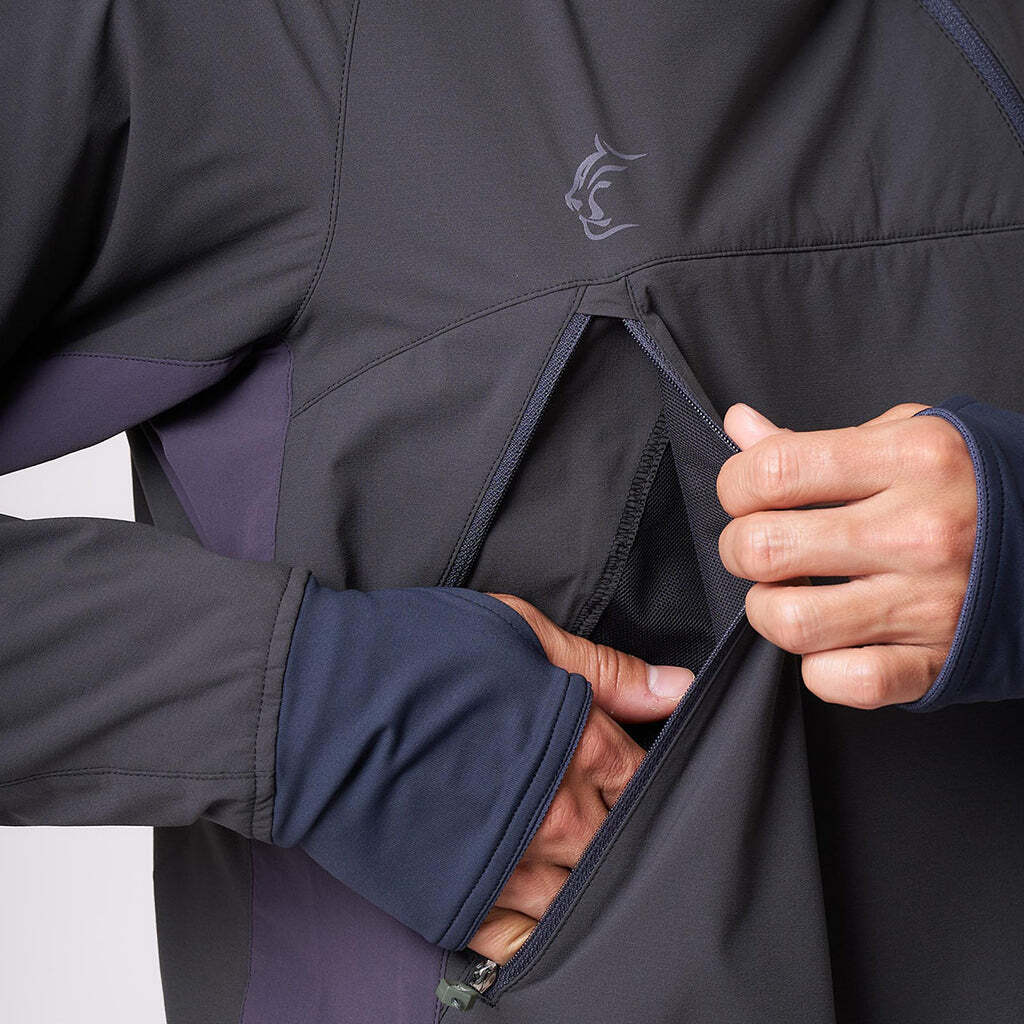 ストレッチ性と速乾性に優れた素材を袖口に使用。サムアンカー付きで手首にしっかりとフィットし、外気の侵入を防ぐ。